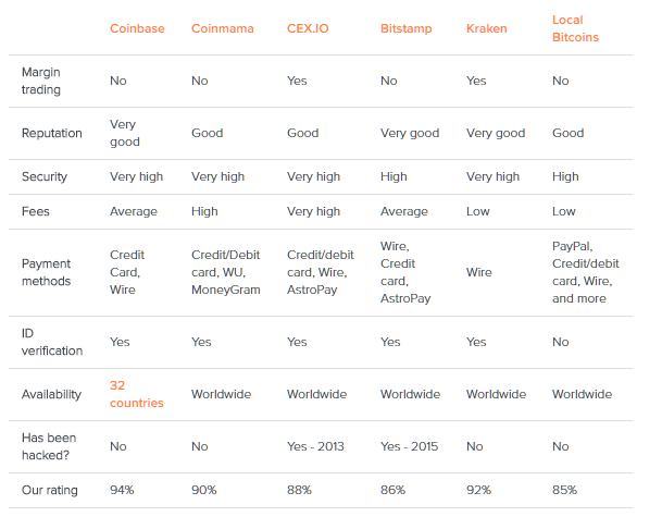 Here is a comparison table of different cryptocurrency exchanges — including some that we have spoken about today and some others you might want to look at.